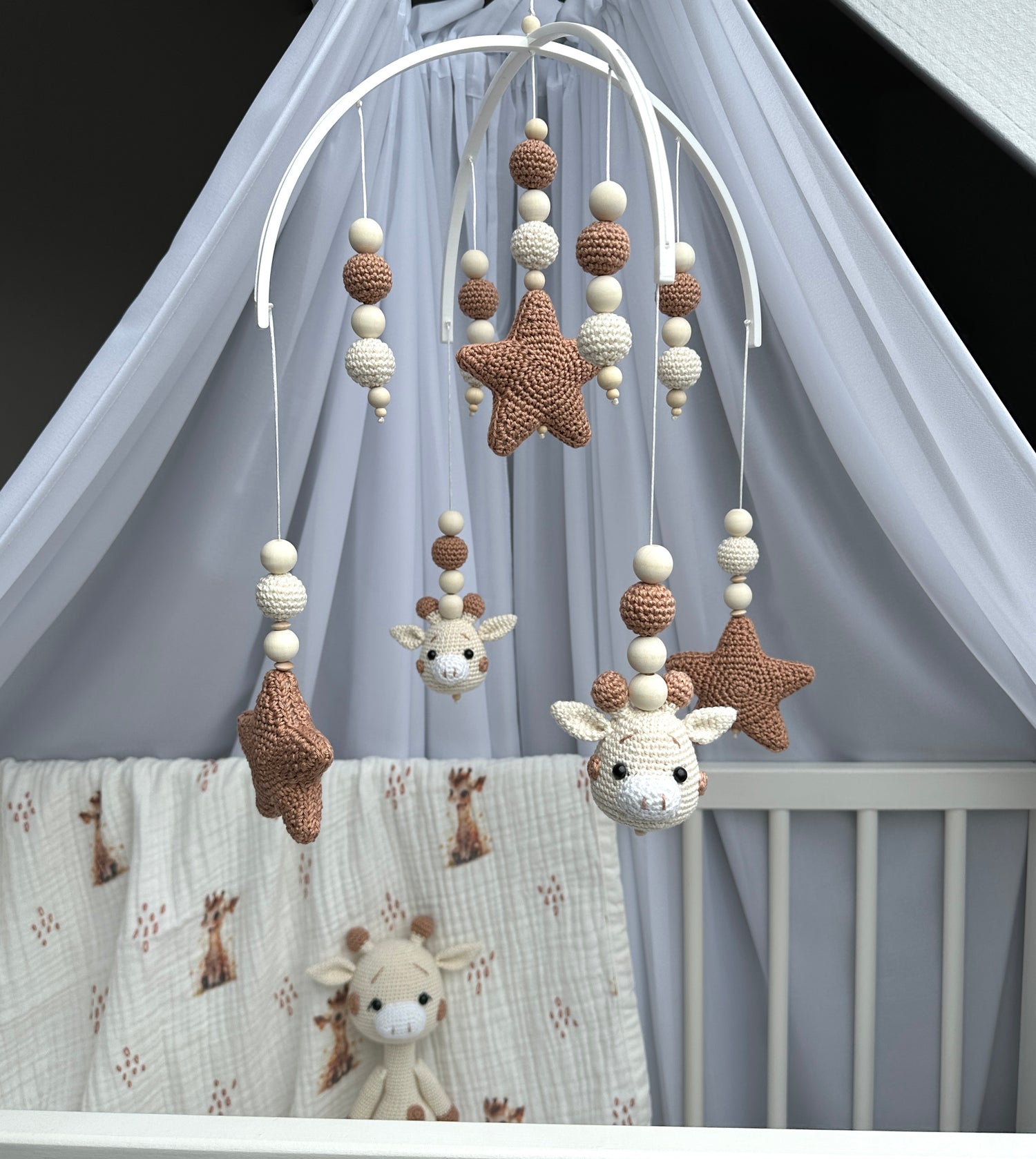 Unsere Kinder-Mobiles sind kleine Kunstwerke, die nicht nur die Fantasie Ihres Babys anregen, sondern auch ein wunderbarer Blickfang im Kinderzimmer sind. Die sanften Bewegungen der handgehäkelten Elemente und die harmonischen Farbkombinationen schaffen eine beruhigende und anregende Umgebung.