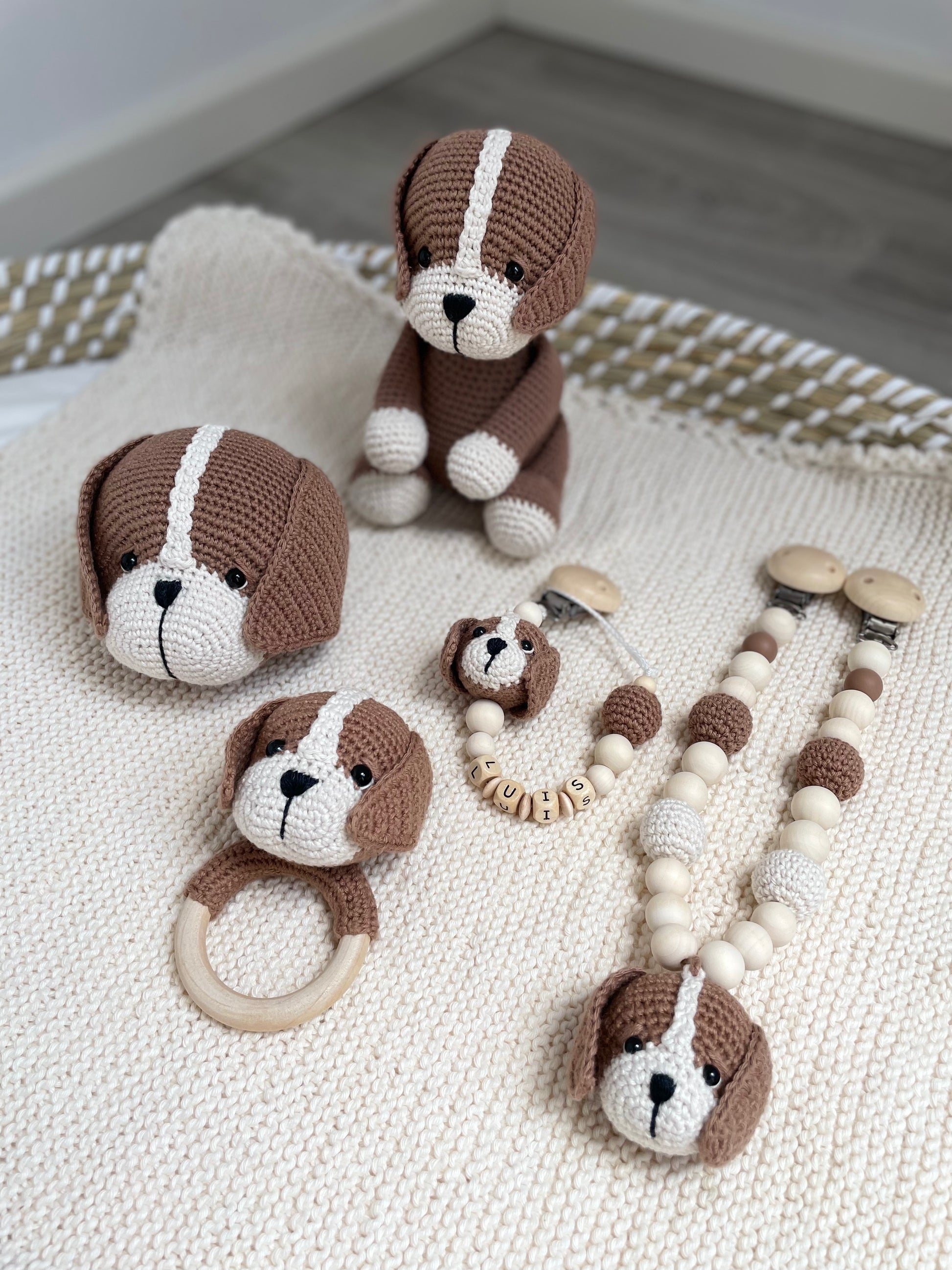 Unsere Newborn-Sets bestehen alle aus Schnullerkette, Kinderwagenkette, Rassel, Kuscheltier und der Spieluhr. Das passende Mobile zu jedem Set findest du unter der Kategorie „Baby Mobile“.