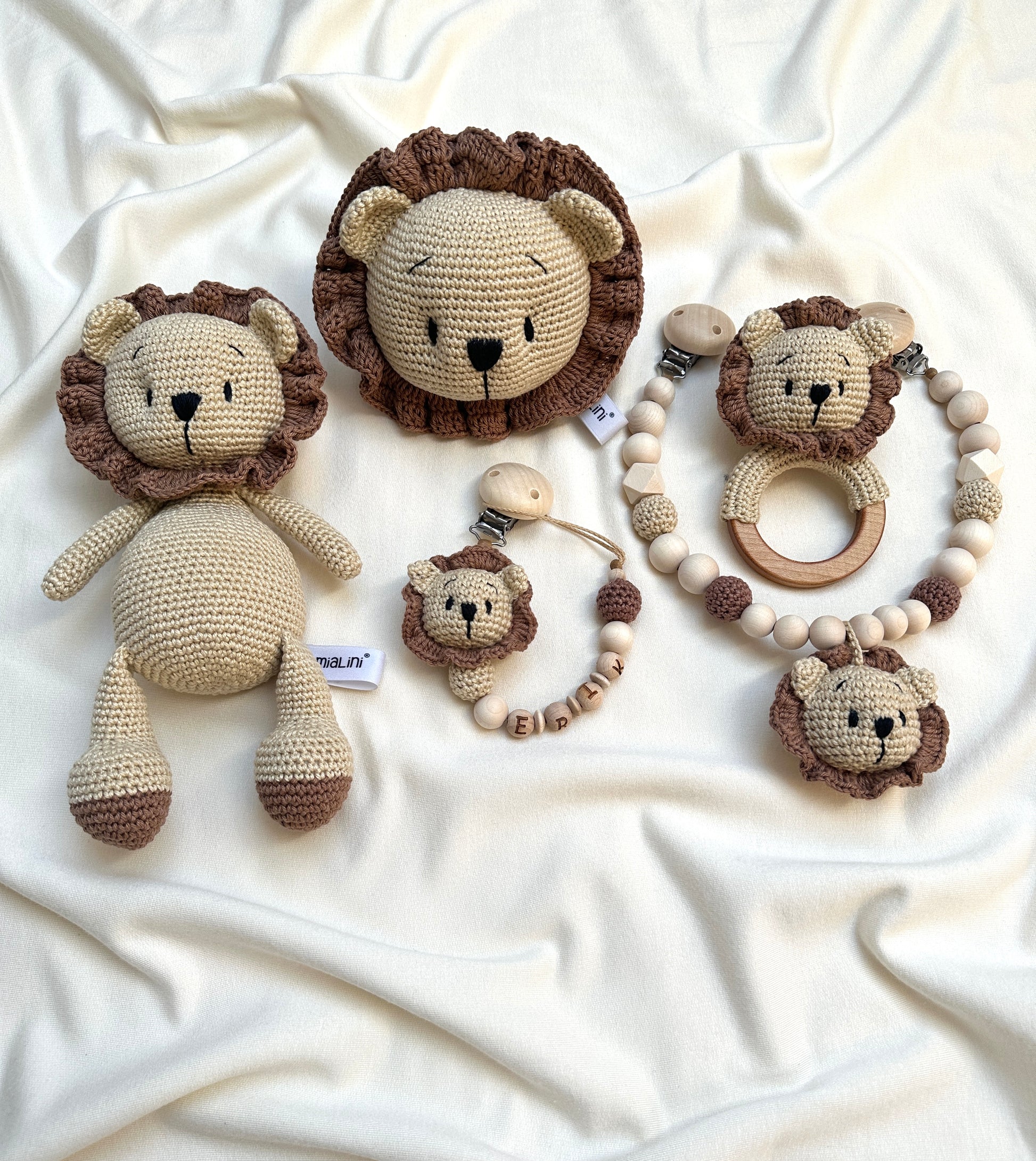 Unsere Newborn-Sets bestehen alle aus Schnullerkette, Kinderwagenkette, Rassel, Kuscheltier und der Spieluhr. Das passende Mobile zu jedem Set findest du unter der Kategorie „Baby Mobile“.
