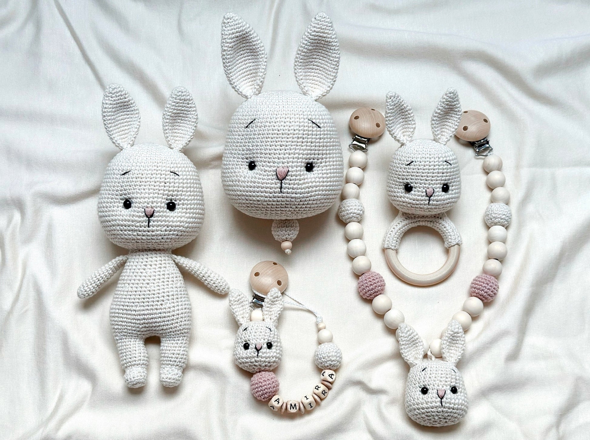 Unsere Newborn-Sets bestehen alle aus Schnullerkette, Kinderwagenkette, Rassel, Kuscheltier und der Spieluhr. Das passende Mobile zu jedem Set findest du unter der Kategorie „Baby Mobile“.