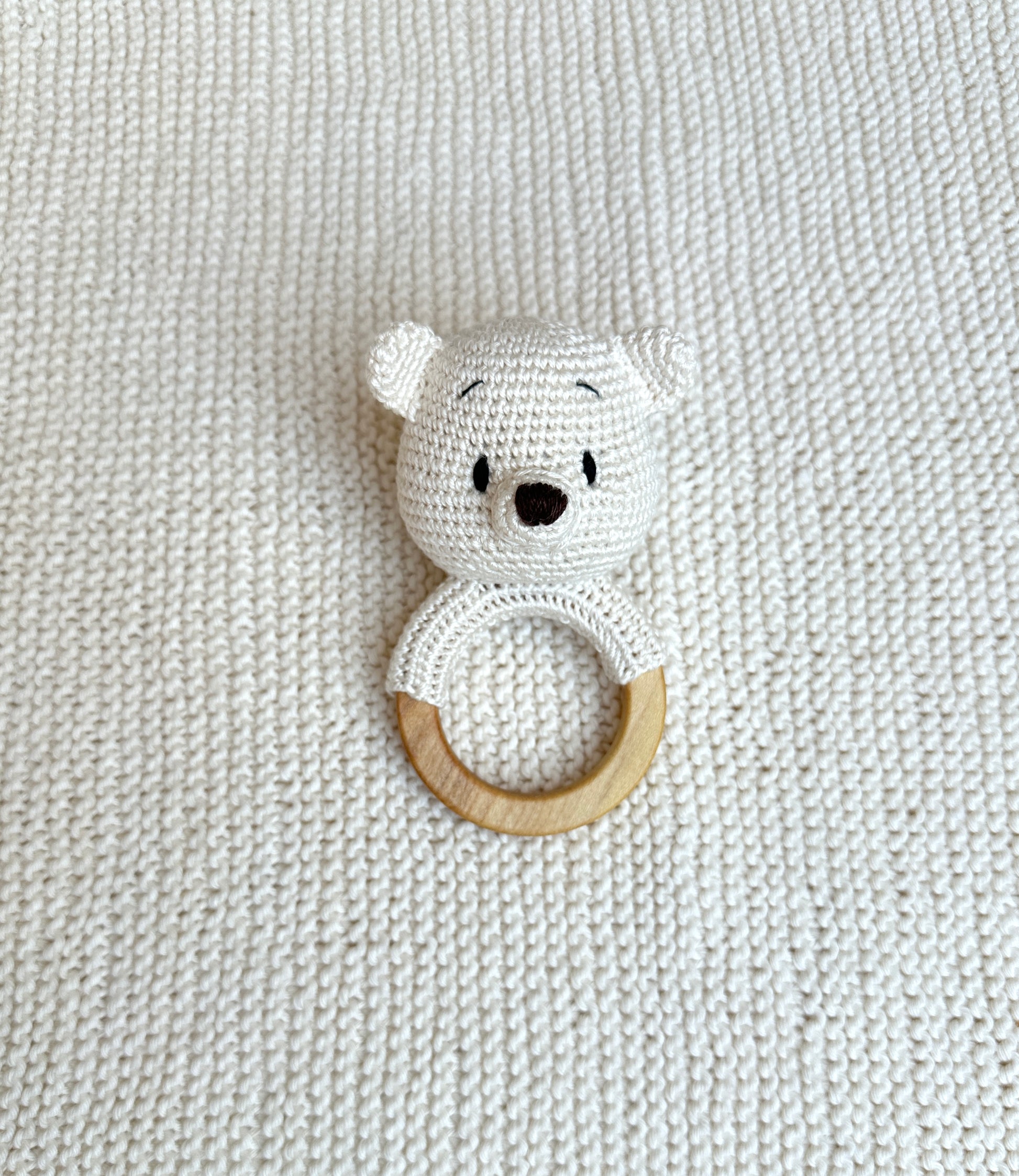 Die süße Rassel “TEDDY“ im Bär Design fördert spielerisch die Sinneswahrnehmung durch sanftes Rasseln und trainiert die Motorik deines Babys. Der Holzring ist hochwertig verarbeitet und eignet sich perfekt um die Zahnung deines Babys zu unterstützen.