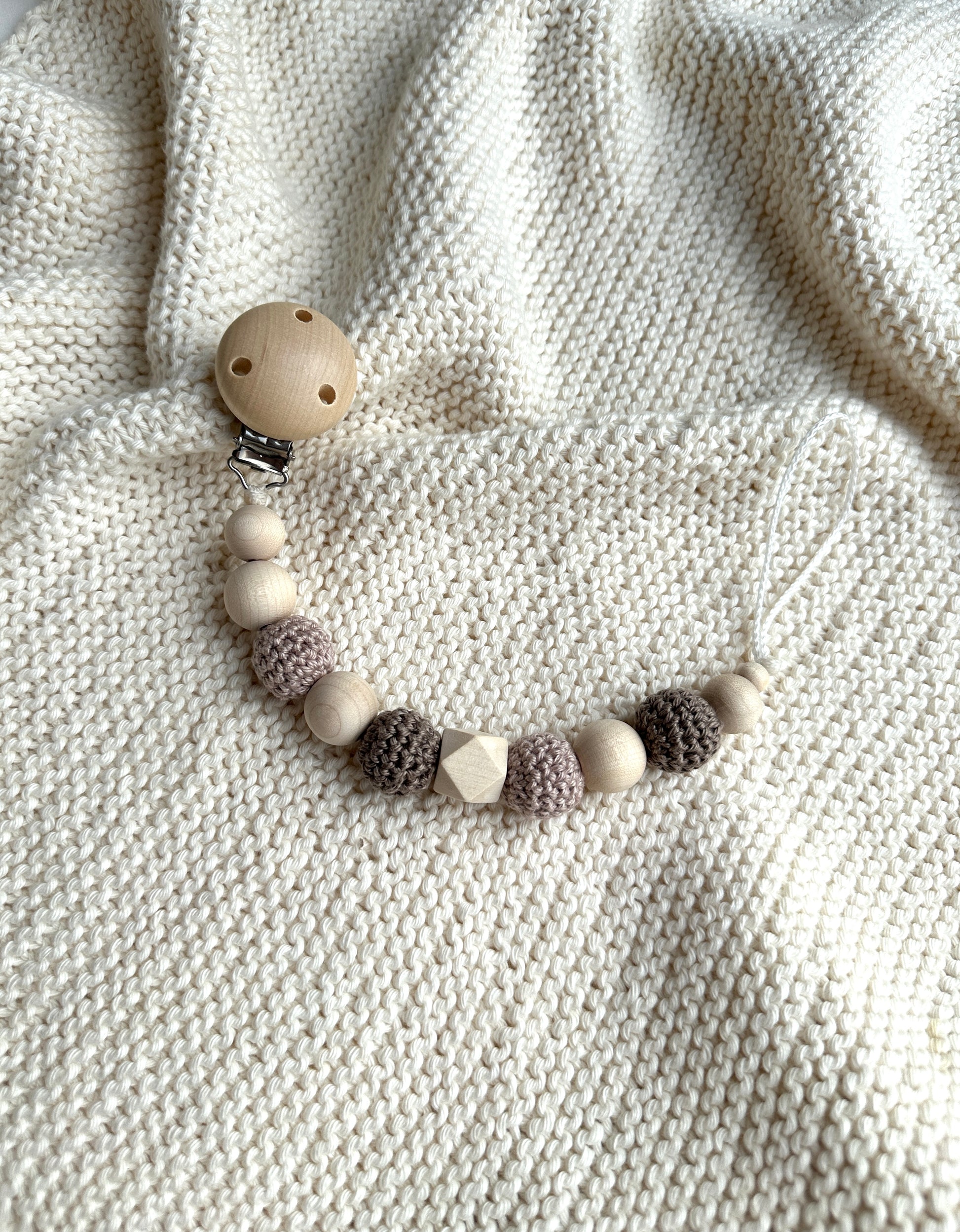 Jedes einzelne Stück wird in liebevoller Handarbeit angefertigt. Die wunderschöne Schnullerkette ist ein Hingucker für jeden Schnuller und ein tolles Accessoire für jedes Baby. Eignet sich perfekt als Geschenk zur Geburt oder Taufe. Unsere einzigartigen Schnullerketten werden das Neugeborene die erste Zeit begleiten und anschließend als schöne Erinnerung aufgehoben.