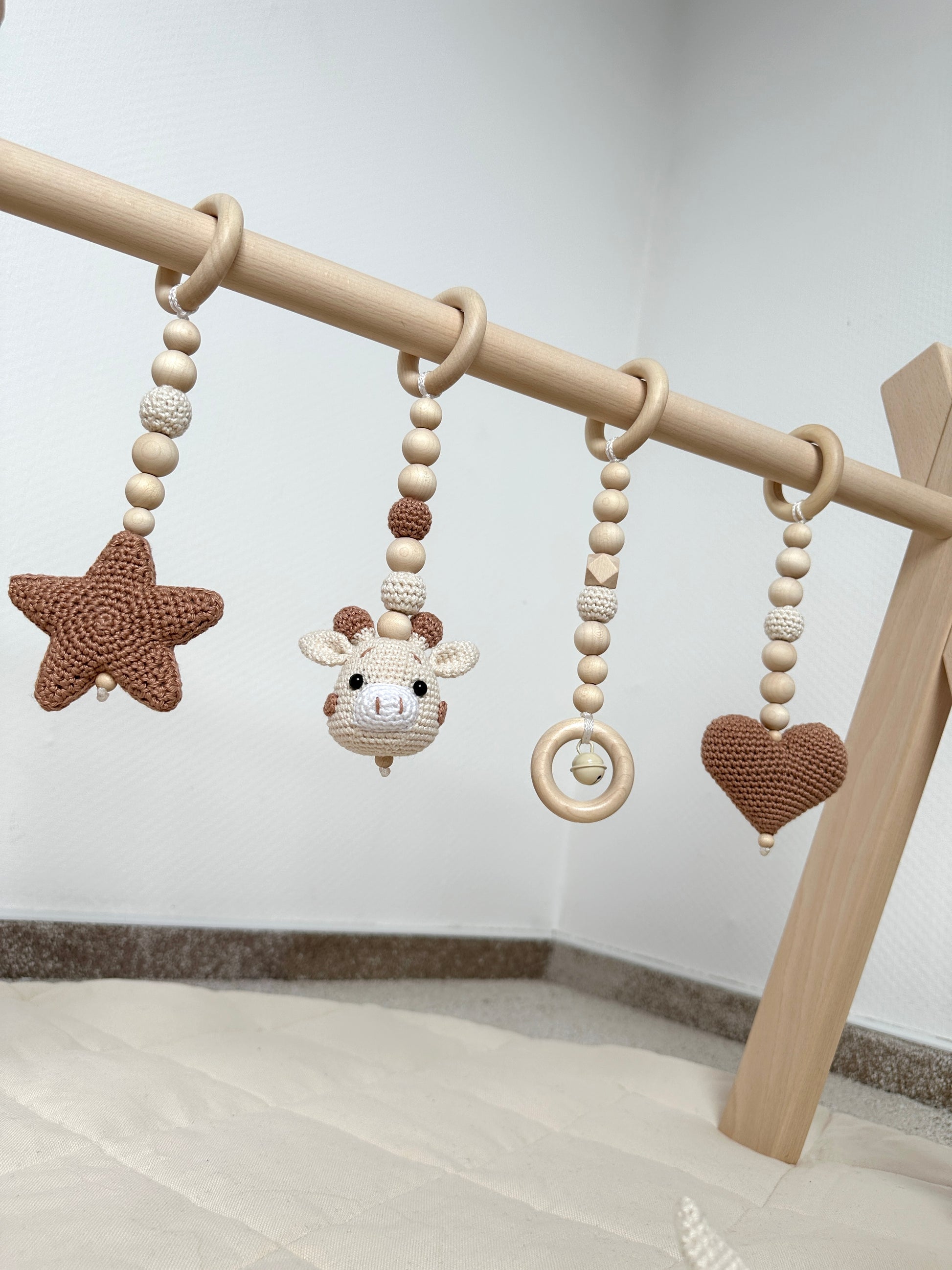 Entdecke unseren liebevoll gestalteten Spielbogen „GIRA“. Hergestellt in höchster Qualität aus unbehandeltem Buchenholz. Zusammen mit unseren vier handgefertigten Anhängern eignet es sich nicht nur hervorragend zum Spielen für dein Baby, sondern unterstützt gleichzeitig die motorische und sensorische Entwicklung.