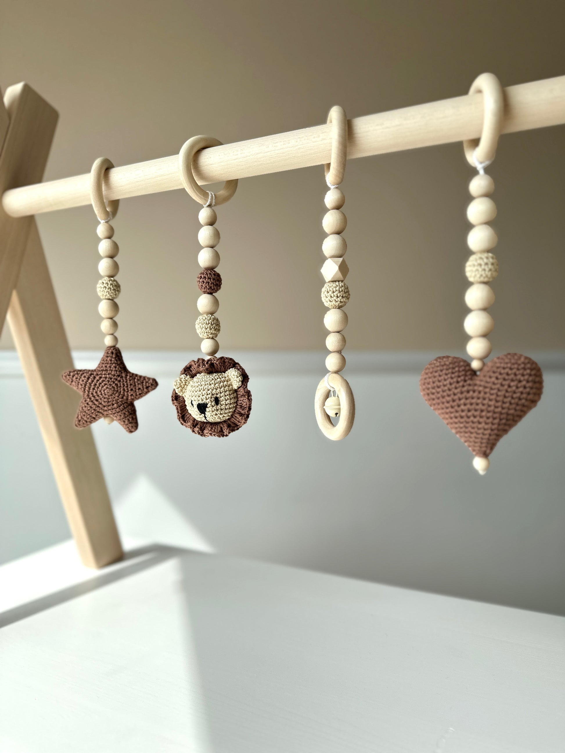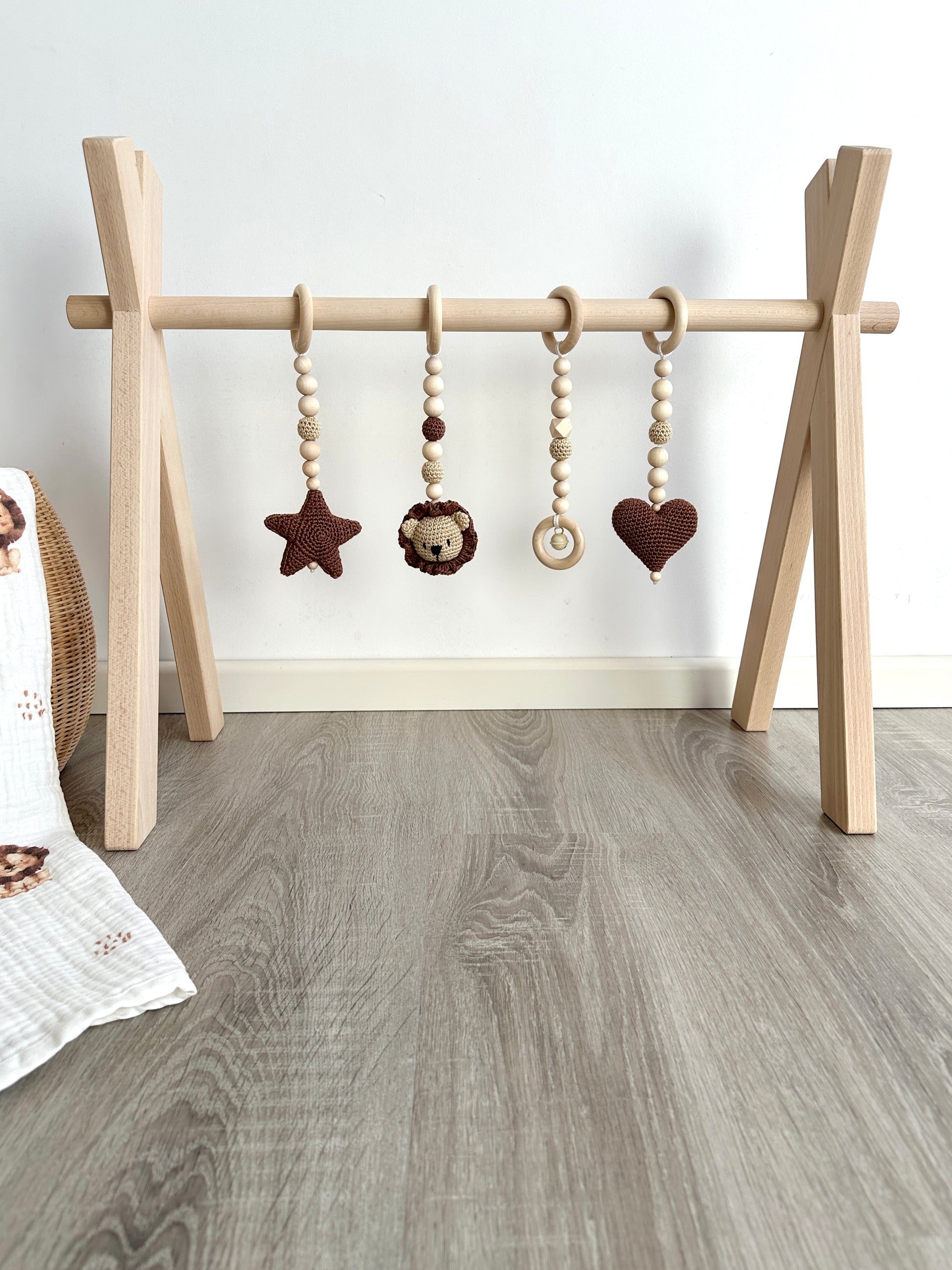 Entdecke unseren liebevoll gestalteten Spielbogen „LEO“. Hergestellt in höchster Qualität aus unbehandeltem Buchenholz. Zusammen mit unseren vier handgefertigten Anhängern eignet es sich nicht nur hervorragend zum Spielen für dein Baby, sondern unterstützt gleichzeitig die motorische und sensorische Entwicklung.