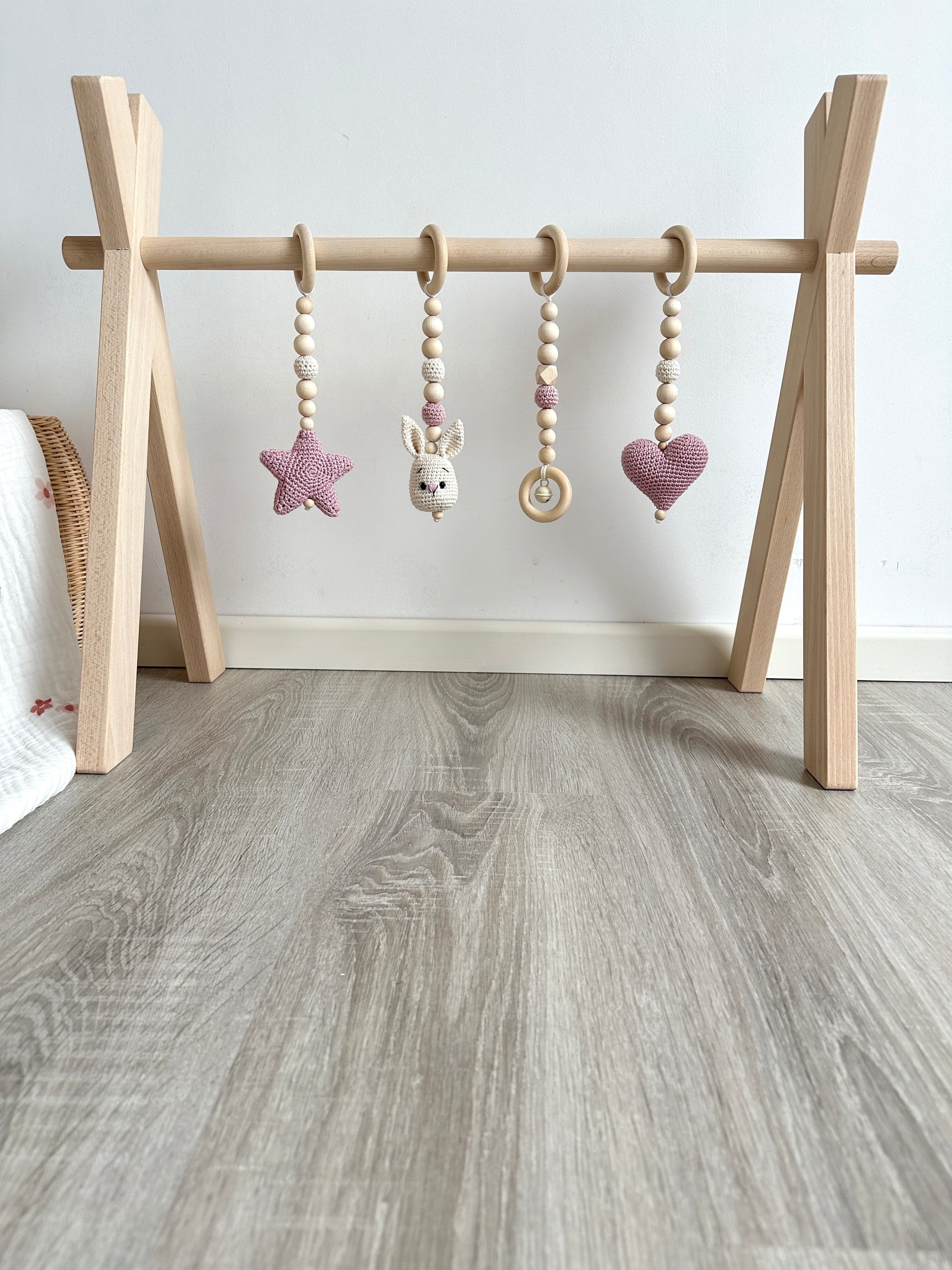Entdecke unseren liebevoll gestalteten Spielbogen „NOLA“. Hergestellt in höchster Qualität aus unbehandeltem Buchenholz. Zusammen mit unseren vier handgefertigten Anhängern eignet es sich nicht nur hervorragend zum Spielen für dein Baby, sondern unterstützt gleichzeitig die motorische und sensorische Entwicklung.