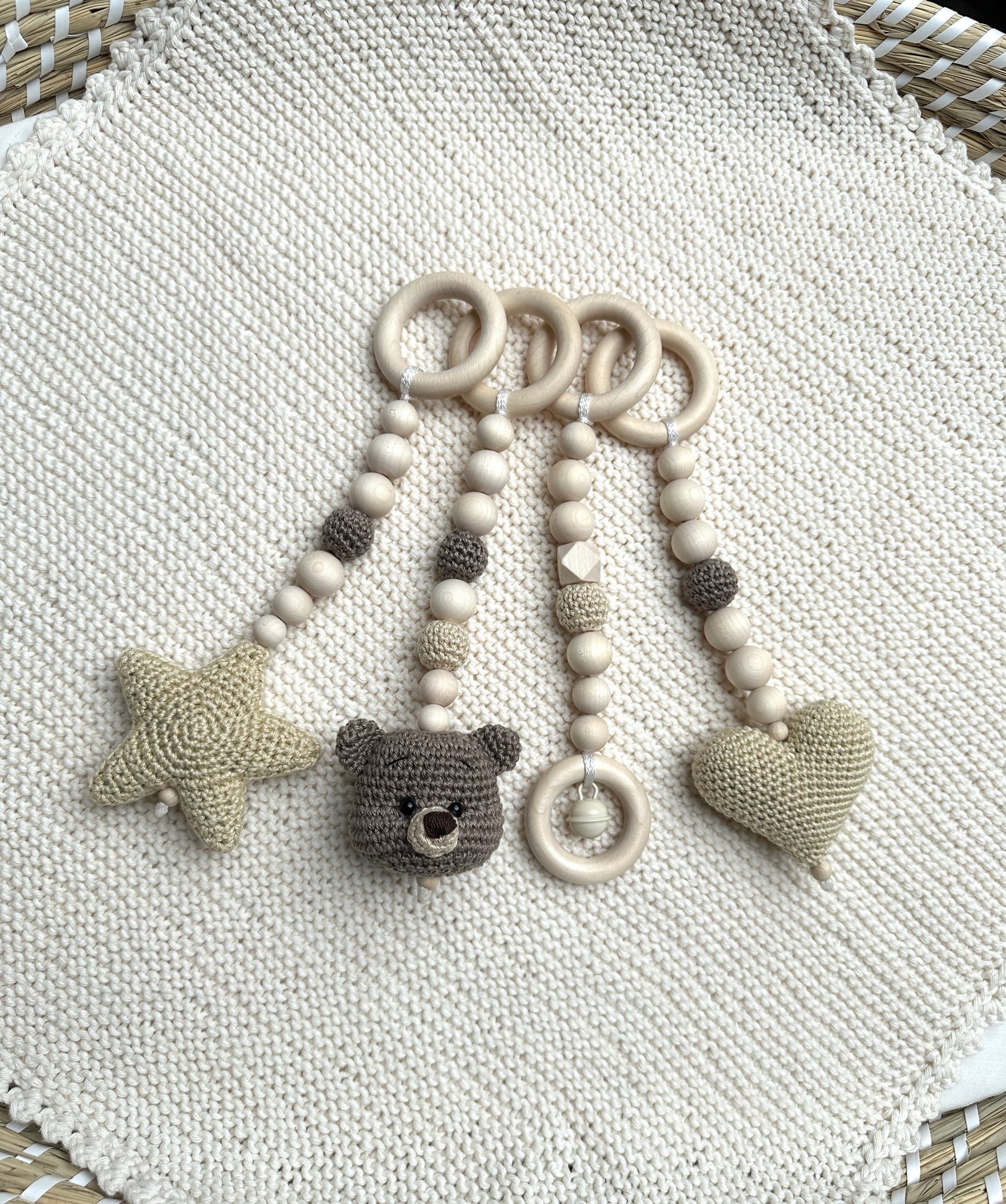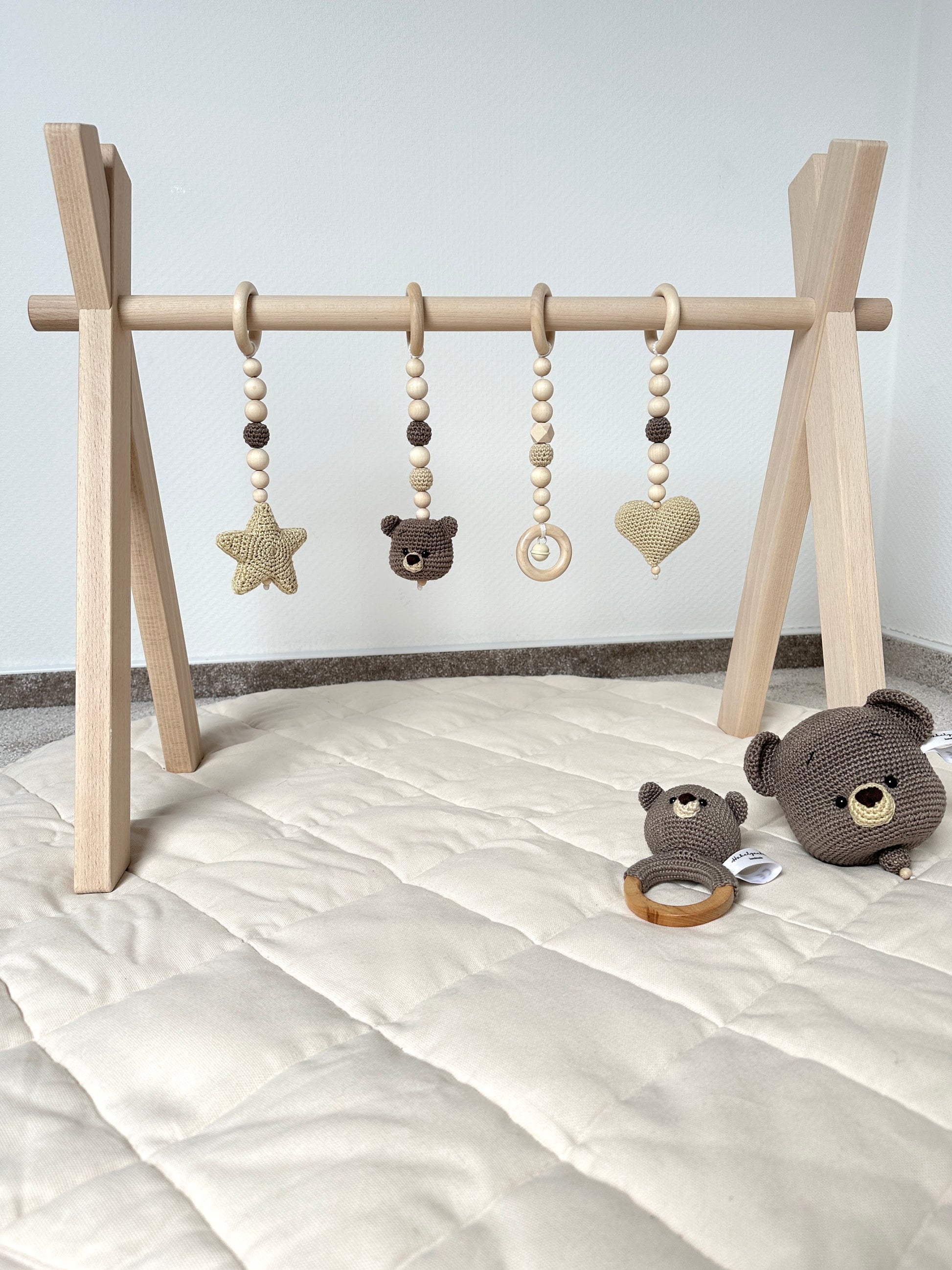 Entdecke unseren liebevoll gestalteten Spielbogen „TEDDY“. Hergestellt in höchster Qualität aus unbehandeltem Buchenholz. Zusammen mit unseren vier handgefertigten Anhängern eignet es sich nicht nur hervorragend zum Spielen für dein Baby, sondern unterstützt gleichzeitig die motorische und sensorische Entwicklung.