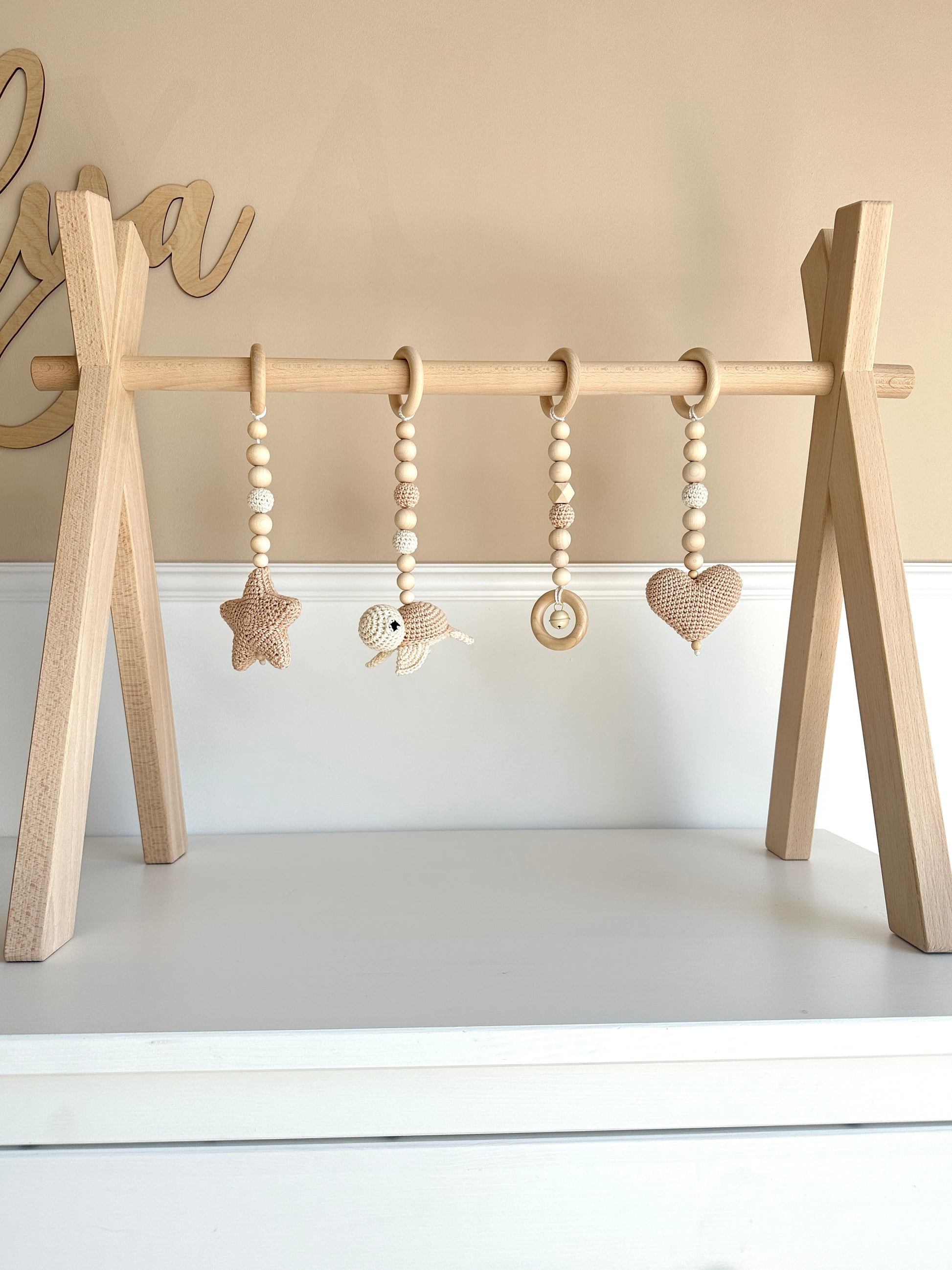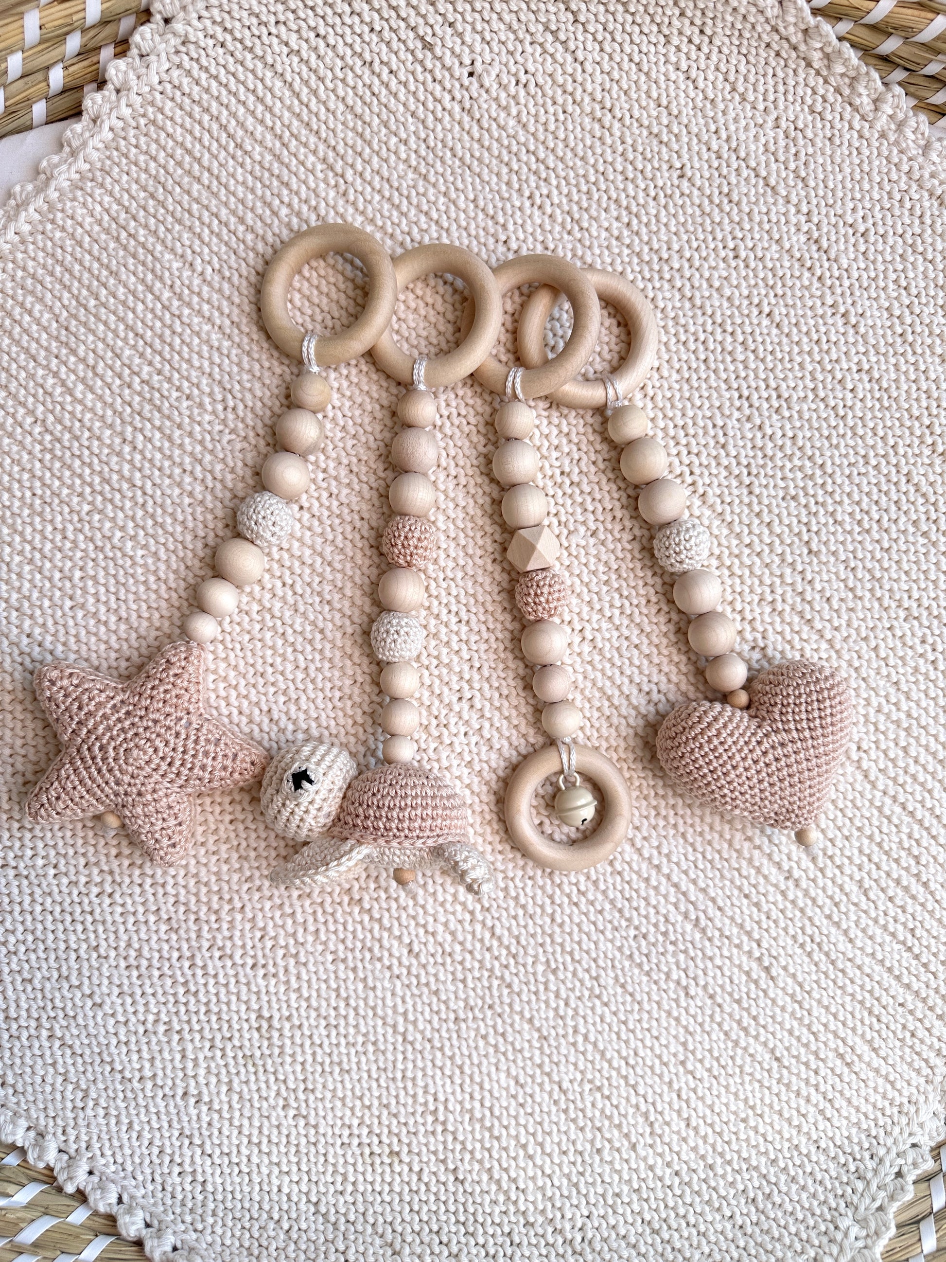 Entdecke unseren liebevoll gestalteten Spielbogen „TURTLE“. Hergestellt in höchster Qualität aus unbehandeltem Buchenholz. Zusammen mit unseren vier handgefertigten Anhängern eignet es sich nicht nur hervorragend zum Spielen für dein Baby, sondern unterstützt gleichzeitig die motorische und sensorische Entwicklung.